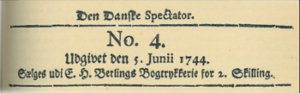 Som den varmeste fortaler for fortidsorientering i undervisningslokalet forsøgte jeg da at byde ind med historiske paralleller til disse kulturelle brydninger, og vi har jo virkelig gennemspillet alt dette før. Der er klare paralleller mellem 2010’ernes blogkultur og 1740’ernes tidsskriftskultur, hvor en række danske adaptioner af de engelske Spectator-tidsskrifter med deres moraliserende og humoristiske indhold så dagens lys.