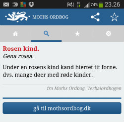 Moth har ikke ret mange digteriske opslagsord og eksempler. Han var mere optaget af normalstil og dagligsprog. Men han har dog optaget Kingos nydannelse ‘Rosenkind’ fra salmen ‘Sorrig og Glæde’ (i andagtsbogen Aandelig Siungekors Anden Part, 1681). ‘Under en rosens kind kand hiertet tit forne [dvs. visne]’ citerer han nok efter hukommelsen eller efter et optryk eller en afskrift uden forfatterens autorisation, i hvert fald er syntaksen og versemålet brudt. Og så kommer hans betydningsforklaring af Kingos antitese, der skal udtrykke en kontrastfuld samtidighed af et livfuldt ydre og et livstræt sind. Forklaringen er påfaldende nøgtern: ‘dvs. [skriver Moth] mange døer med røde kinder’! Man mærker, at han var uddannet mediciner. Han holder nærmest ligsyn over den retoriske gestalt, Kingo har frembragt. Og så mærker man omvendt, at Kingo ikke bare var digter, men også, at han repræsenterede en avanceret avantgardistisk kunstdigtning, der i modsætning til andre tiders avantgardelitteratur dog cirkulerede bredt (på grund af særtræk ved enevælden og det tidligmoderne bogmarked). Barokkens billedsprog kunne således gå hen over hovedet på en ellers fremragende læser og sprogbruger. Moths læsning kaster et vigtigt litteratursociologisk perspektiv over tidens litterære kultur, og så rummer læsningen den didaktisk set opbyggelige pointe, at når selv samtiden ikke fattede Kingo, så må vi være omhyggelige, når vi går til værks 300 år senere. Og skulle vi alligevel præstere en fejllæsning, så kan den være produktiv. Der er meget at komme efter i Moths Ordbog, men jeg vil gå til Holberg for et andet kort eksempel.
